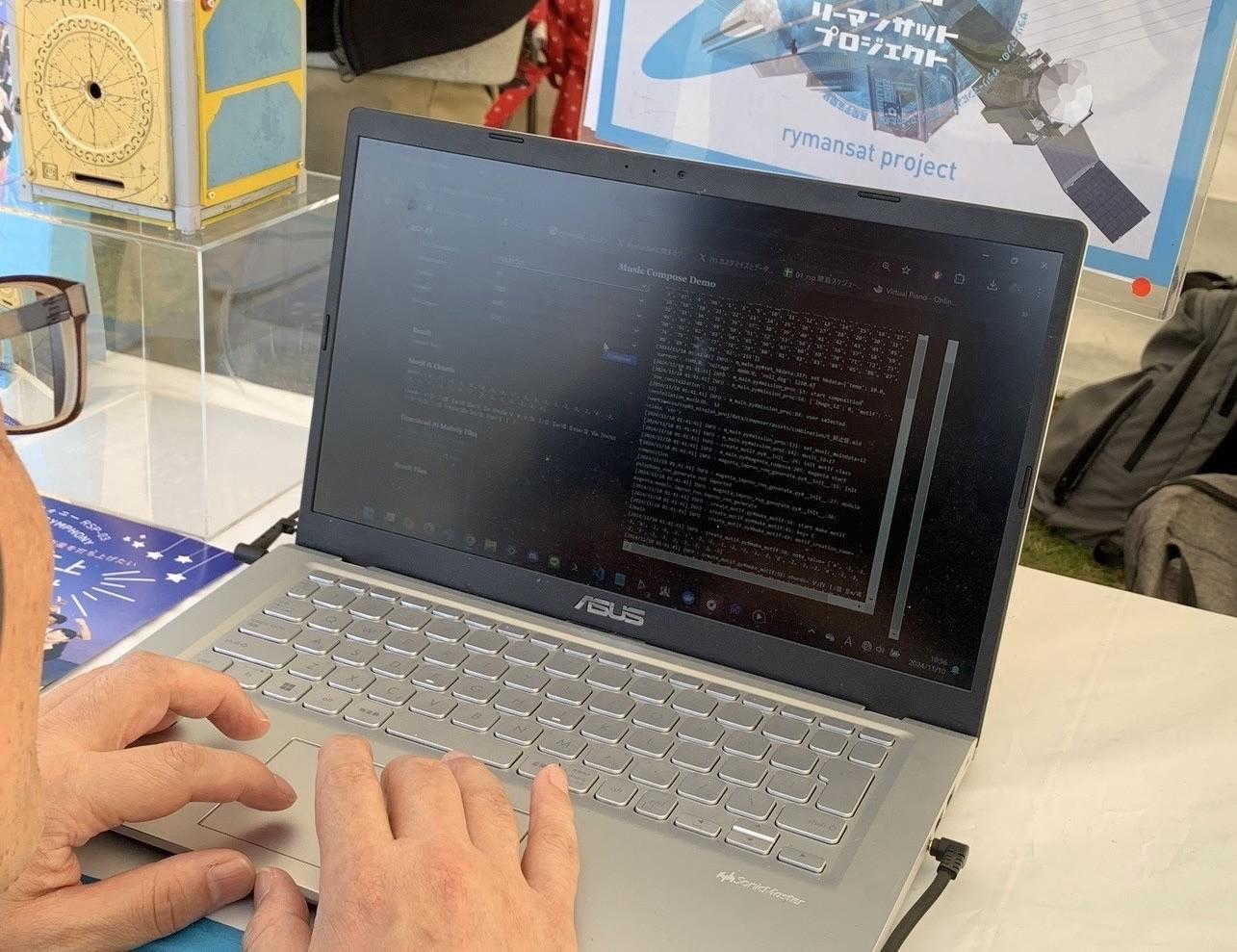そして、まだまだ沢山ハモるん関係展示します!ハモるんの作曲を体験できる「作曲デモアプリ」!ハモるんの体調に応じて音楽が変わるのを疑似体験!